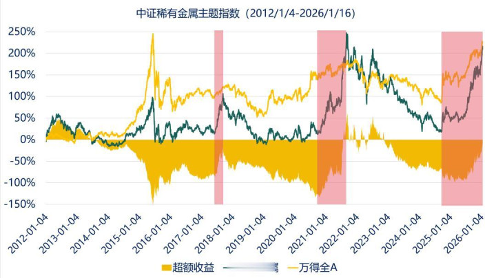 关于有色的行业分析就到这里。作为基民,不少读者会觉得,有色金属板块自2025年以来已经上涨不少,现在入局是否会追高?对于这个问题,让我们从历史当中找找答案。